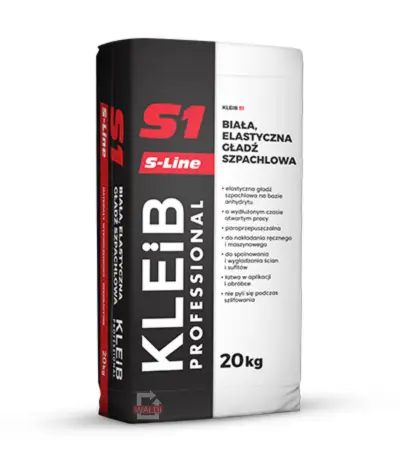 KLEIB S1 jest białą dwufunkcyjną masą szpachlową przeznaczoną do spoinowania i szpachlowania płyt gipsowo-kartonowych oraz do robót wykończeniowych i dekoracyjnych w budownictwie. KLEIB S1 może być stosowany na podłoża cementowo-wapienne, betonowe i gipsowe oraz płyty gipsowo-kartonowe.