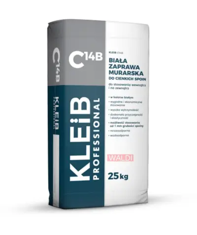 KLEIB C14B jest białą zaprawą murarską przeznaczoną do wznoszenia murów konstrukcyjnych i niekonstrukcyjnych z elementów z betonu komórkowego, cegieł, pustaków oraz innych tego typu materiałów ceramicznych, betonowych bądź wapienno-piaskowych. Zaprawa pozwala na łączenie elementów cienkimi spoinami, o grubości od 1 mm. Maksymalna grubość spoiny nie powinna przekraczać 5 mm. Zaprawa może być używana również do wyrównywania oraz szpachlowania powierzchni (grubość warstwy 1÷5 mm). Można ją stosować wewnątrz i na zewnątrz budynku.