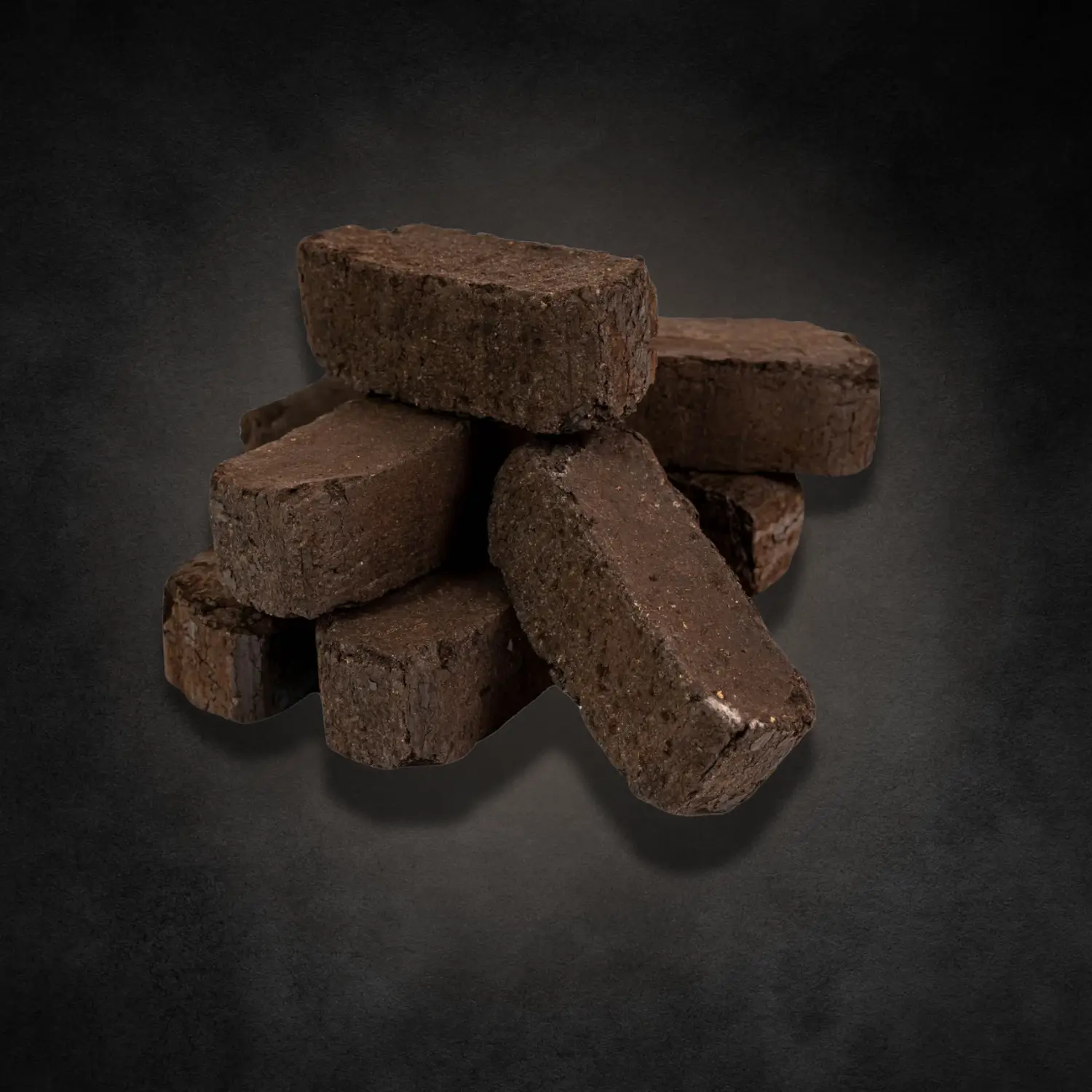 Kostki brykietu torfowego zajmują niewielką przestrzeń i można je układać w stosy, jedna na drugiej, co z pewnością ułatwia składowanie.