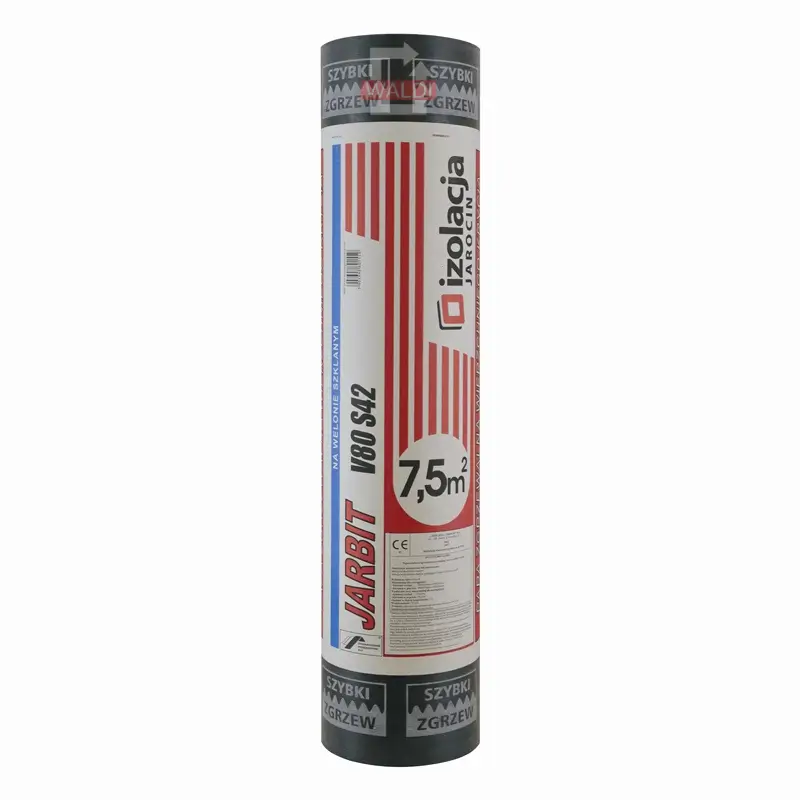 Papa zgrzewalna wierzchniego krycia Jarbit V80 S42 ma podwyższone parametry wytrzymałościowe w stosunku do typowych pap na osnowie z welonu szklanego. Otrzymywana jest poprzez nasycenie i powleczenie z obu stron osnowy z welonu szklanego wysokiej jakości asfaltem oksydowanym z dodatkiem wypełniaczy mineralnych. Wierzchnia strona papy jest posypana gruboziarnistą posypką, spodnia strona wstęgi papy jest zabezpieczona folią z tworzywa sztucznego.