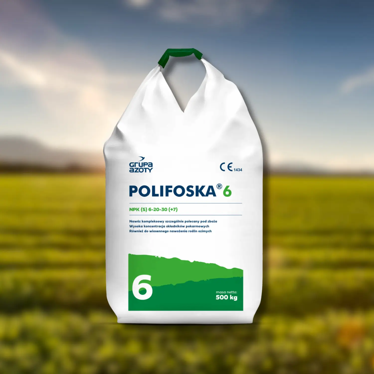 Kompleksowy nawóz wieloskładnikowy do stosowania przedsiewnego (zaleca się wymieszać z glebą na głębokość 10‑20 cm) pod wszystkie rośliny uprawne: zboża ozime i jare, rzepak ozimy, kukurydzę, buraki cukrowe, ziemniaki, na użytkach zielonych oraz w uprawie warzyw i sadownictwie. Nawóz Polifoska 6 można stosować również pogłównie na rzepak ozimy wczesną wiosną. Polifoska 6 jest szczególnie zalecana do stosowania na glebach ubogich w potas, w warunkach niskiego nawożenia organicznego, pod rośliny potasolubne oraz pod zboża, gdy zbierana jest słoma.