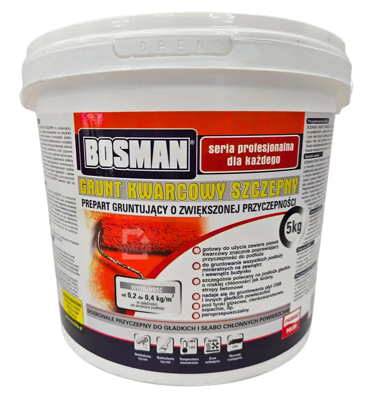 Grunt kwarcowy szczepny to preparat gruntujący o wysokiej przyczepności, który jest produktem gotowym do użycia. Produkowany na bazie mieszaniny dyspersji żywic syntetycznych o wysokiej odporności na działanie środków alkalicznych z piaskiem kwarcowym i dodatkami modyfikującymi. Zawartość piasku kwarcowego sprawia, że po nałożeniu preparatu, można uzyskać odpowiednio szorstką powierzchnię, która ułatwia prawidłowe nakładanie oraz zwiększa przyczepność kolejnych warstw materiału do podłoża.