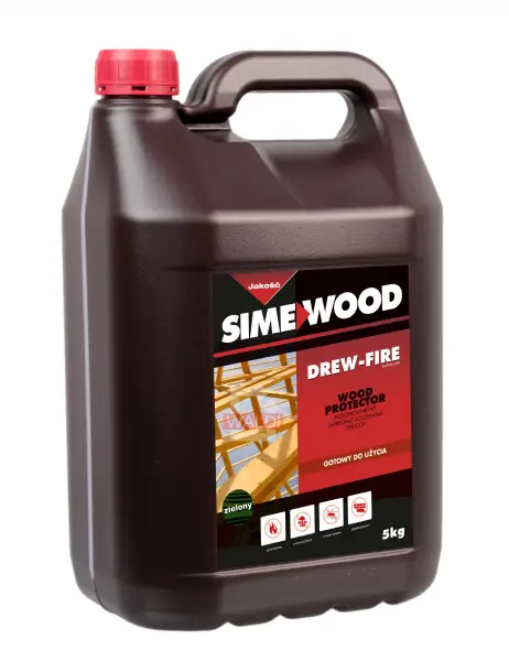 DREW-FIRE to 4 funkcyjny impregnat przeznaczony do zabezpieczania drewna budowlanego montowanego w przestrzeniach uniemożliwiających wymywanie. DREW-FIRE zabezpiecza przed działaniem ognia, owadów, grzybów domowych (również tych powodujących głęboki rozkład drewna) oraz pleśni. DREW-FIRE oferowany jest w formie gotowej do użycia.